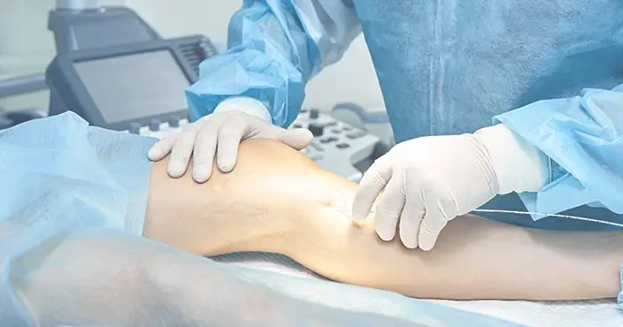 Traitement peu invasif par injections pour éliminer les varicosités.